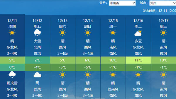 中国天气网讯 今天(12月11日)夜间起炒股股票配资网站,河南将迎来明显雨雪天气,西部山区局部有冻雨或冰粒;明天,河南降雪增强,郑州、洛阳等地有大雪或暴雪,同时大部地区降温剧烈,需注意交通安全并增强保暖。