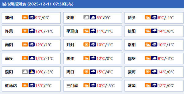 今天夜间,全省多云转阴天,安阳西部、鹤壁、新乡、焦作、济源、三门峡、洛阳、郑州、开封、许昌、漯河、平顶山、南阳北部小雨或雨夹雪转小雪,西部山区局部有冻雨或冰粒;周口西部、南阳中部和南部、驻马店西部、信阳西部有小雨或零星小雨。同时,西部山区、西北部最低气温-4℃到-2℃;南部3℃到5℃;其他县(市、区)-2℃到0℃。